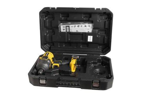 Základom je bezuhlíkový motor, ktorý prináša množstvo výhod oproti klasickým uhlíkovým variantom – dlhšiu životnosť, vyššiu účinnosť, nižšie energetické straty a minimálnu údržbu. Vďaka tomu sa náradie nezahrieva tak rýchlo, pracuje plynulejšie a poskytuje stabilný výkon aj pri dlhodobom zaťažení. Maximálny uťahovací moment až 1400 Nm zaručuje, že uťahovák ľahko povolí aj pevnostné skrutky alebo zhrdzavené matice kolies. Rýchlosť otáčok a počet úderov je možné nastaviť v štyroch úrovniach, čo umožňuje presne prispôsobiť výkon konkrétnej aplikácii – od jemného dotiahnutia spojov až po náročné povoľovanie zatuhlých skrutiek.