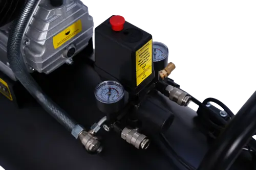 Výkonný dvouválcový motor: 2,2 kW poskytuje rychlé a efektivní stláčení vzduchu, ideální pro náročné aplikace jako je lakování, pískování, ofukování, použití pneumatického nářadí nebo plnění větších nádrží a pneumatik.
