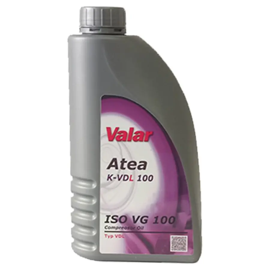 Valar Atea K-VDL100 je vysoko výkonný bezpopolový kompresorový olej na báze špeciálnych základových olejov a moderných bezpopolových, vysoko kvalitných zušľachťujúcich prísad. Vyznačuje sa nízkym tlakom nasytených pár a vysokým bodom vzplanutia.