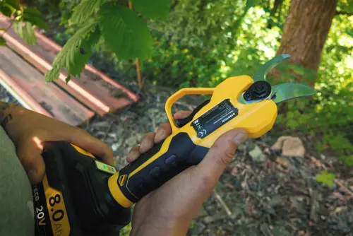 Zažite výkon, presnosť a spoľahlivosť v kompaktnom prevedení. Akumulátorové nožnice na konáre PROFI boli navrhnuté pre tých, ktorí od svojho náradia očakávajú vysoký výkon a maximálny komfort. Či už ste vášnivý záhradkár, starostlivý ovocinár alebo profesionál, ktorý denne pracuje v teréne, tieto nožnice vás nesklamú. Vďaka nízkej hmotnosti len 0,8 kg perfektne padnú do ruky, čo výrazne znižuje únavu aj pri dlhodobom používaní.