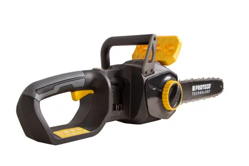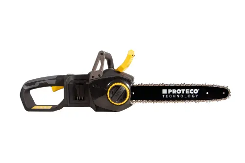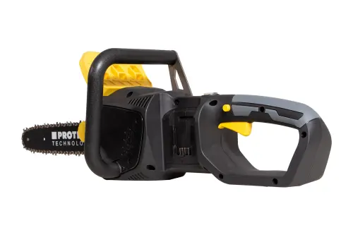Akumulátorová reťazová píla PROTECO s dĺžkou lišty 36 cm je vynikajúcim nástrojom na prerezávanie stromov, rezanie kmeňov, guľatiny a tiež na výrobu produktov z dreva. Motor napajáný dvoma 20 V batériami poskytuje maximálny krútiaci moment a účinnosť pre ľahké rezanie, zabezpečuje tichú prevádzku a ni je obmedzený prívodnými káblami. 36 cm lišta technológie PROTECO je vhodná aj na rezanie väčších polien. Rýchly mechanický a elektronický brzdový systém reťaze zaručuje vysokú bezpečnosť. Mazanie sa vykonáva automaticky. Reťaz sa napína pomocou otočného prvku na kryte reťaze - nie je potrebné žiadne náradie.