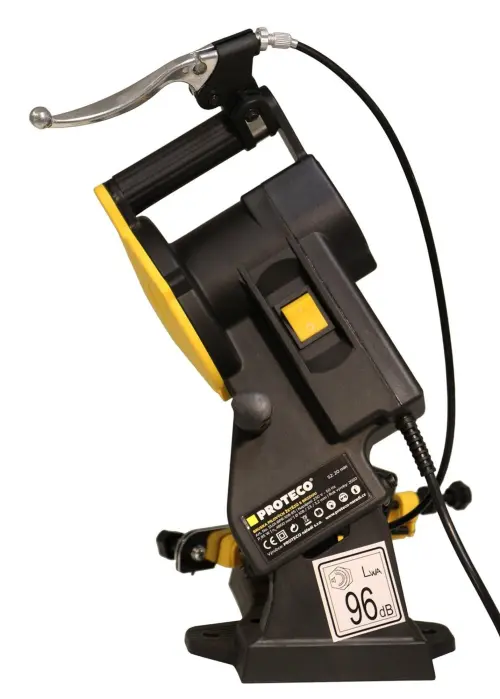 Brúska pílových reťazí 85 W Proteco je vhodná pre brúsenie alebo ostrenie takmer všetkých pílových reťazí použitých v širokej škále moderných motorových píl. Brúska pílových reťazí umožňuje vďaka kvalitnej konštrukcii z odolného plastu, výkonnému bezúdržbovému asynchronnému motoru s výkonom 85 W, brúsnemu kotúči s priemerom 108 mm a hlavne variabilnej možnosti nastavenia uhlov brúsenia bezpečne nabrúsiť, či naostriť všetky tvary a veľkosti ľavých aj pravých zubov pílovej reťaze. Správnym brúsením reťaze možno docieliť nielen uľahčenie Vašej práce, ale aj ochranu a predĺženie životnosti Vašej motorovej píly. Samotné brúsenie, či ostrenie spočíva vo voľbe optimálneho nastavenia hĺbky, uhla ostrenia, uhla britu a prípadnej úpravy obmedzovacej pätky zuba. Všetky tieto nastavovacie procedúry sa vykonávajú pomocou veľmi sofistikovaných a intuitívnych ovládacích prvkov. Brúska pílových reťazí 85 W disponuje možnosťou trvalého upnutia k pracovnému stolu pomocou 2 montážnych otvorov v podstavci, čo umožňuje nielen pohodlné, ale hlavne bezpečné brúsenie pomocou brúsky pílových reťazí. Brúska pílových reťazí 85 W disponuje možnosťou rýchlej a pohodlnej aretácie pomocou pákovej brzdy.