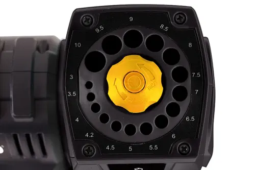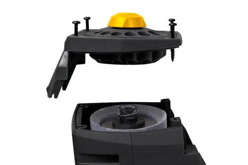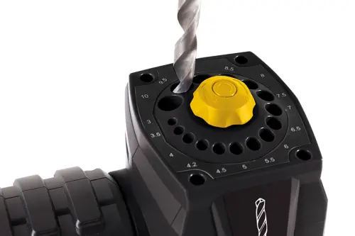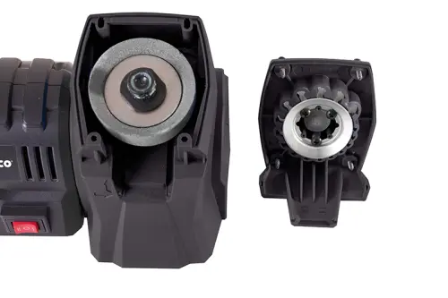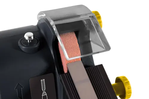 Univerzálna brúska 3v1 na brúsenie drobných nástrojov (nožov, dlát, skrutiek atď.) na ostrenie nožov, vŕtačiek s min. priemerom 3 mm a maximálnym priemerom 10 mm. Adaptéry majú bajonetové upínanie, čo uľahčuje ich výmenu. Stačí len nasadiť a pootočiť. Adaptér na ostrenie nožov je osadený kotúčmi s diamantovým povlakom.
