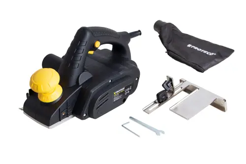 Elektrický hoblík PROTECO je vhodný nástroj na opracovanie a hobľovanie materiálov, ako sú trámy, hranoly a dosky. Zabezpečuje kvalitné opracovanie dreva bez zbytočnej námahy, pretože je vybavený elektromotorom s výkonom 900 W. Ponúka ľahko nastaveteľný úber od 0 do 3 mm. Šírka hobľovania a šírka záberu je 82 mm, čo poskytuje najlepší výsledok. To vám umožní dosiahnuť požadovaný efekt. Je vybaven protišmykovou ergonomickou rukoväťou, ktorá poskytuje náležitý komfort. Elektický hoblík reže konštantnou rýchlosťou, takže sa nezasekáva. Okrem toho se dá ľahko udržiavať a vymieňať diely, keď sa opotrebujú. K hoblíku možno pripojiť aj odsávač pilín alebo vysávač.