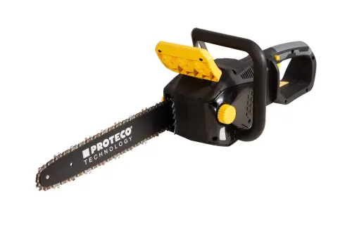 Zvýhodnená ponuka na akumulátorovú reťazovú pílu s 2 akumulátormi 6000 mAh a duálnou nabíjačkou. Akumulátorová reťazová píla PROTECO s dĺžkou lišty 36 cm je vynikajúcim nástrojom na prerezávanie stromov, rezanie kmeňov a polien, ako aj na výrobu výrobkov z dreva. Bezuhlíkový motor napájaný dvoma 20 V akumulátormi poskytuje maximálny krútiaci moment a účinnosť na ľahké rezanie, ako aj tichú prevádzku a nie je obmedzovaný prívodnými káblami. 36 cm lišta technológie PROTECO je vhodná aj na rezanie väčších kmeňov. Rýchly mechanický a elektronický brzdový systém reťaze zaručuje vysokú bezpečnosť. Mazanie sa vykonáva automaticky. Napínanie reťaze sa vykonáva pomocou otočného prvku na kryte reťaze - nie je potrebné žiadne náradie.