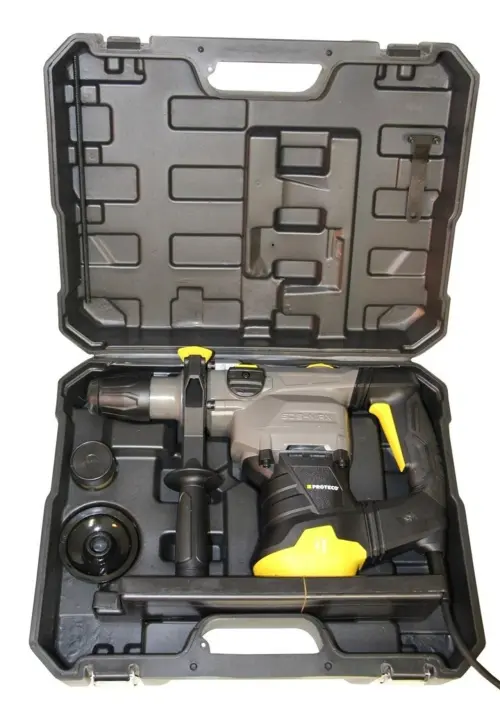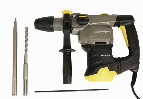 Vŕtacie kladivo Proteco je výborný pomocník, ak často pracujete so stavebnými materiálmi, ako sú tehly a beton. Vŕtačka s príklepom disponuje príkon 1 500 W motorom, ktorý dokáže vyvinúť až 850 otáčok a 4300 úderov za minútu, čo predstavuje 9 J nárazovej energie. Pre ľahké a rýchle upnutie vrtákov a sekáčov slúži systém upínania SDS MAX.