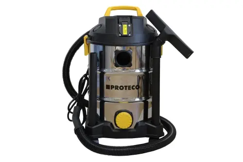 Priemyselný vysávač 1200 W Proteco vďaka výkonu zaisťuje dokonalé čistenie suchých a mokrých čistí vrátane rozliatych kvapalín. Je asistentom pri upratovaní v dome, v dielni alebo dokonca v aute. Nádoba z nehrdzavejúcej ocele obsahuje až 30 l nečistôt. Skladacia trubica uľahčuje ukladanie vysávača. Otočné kolesá s rukoväťou zaisťujú skvelú manipuláciu s vysávačom.
