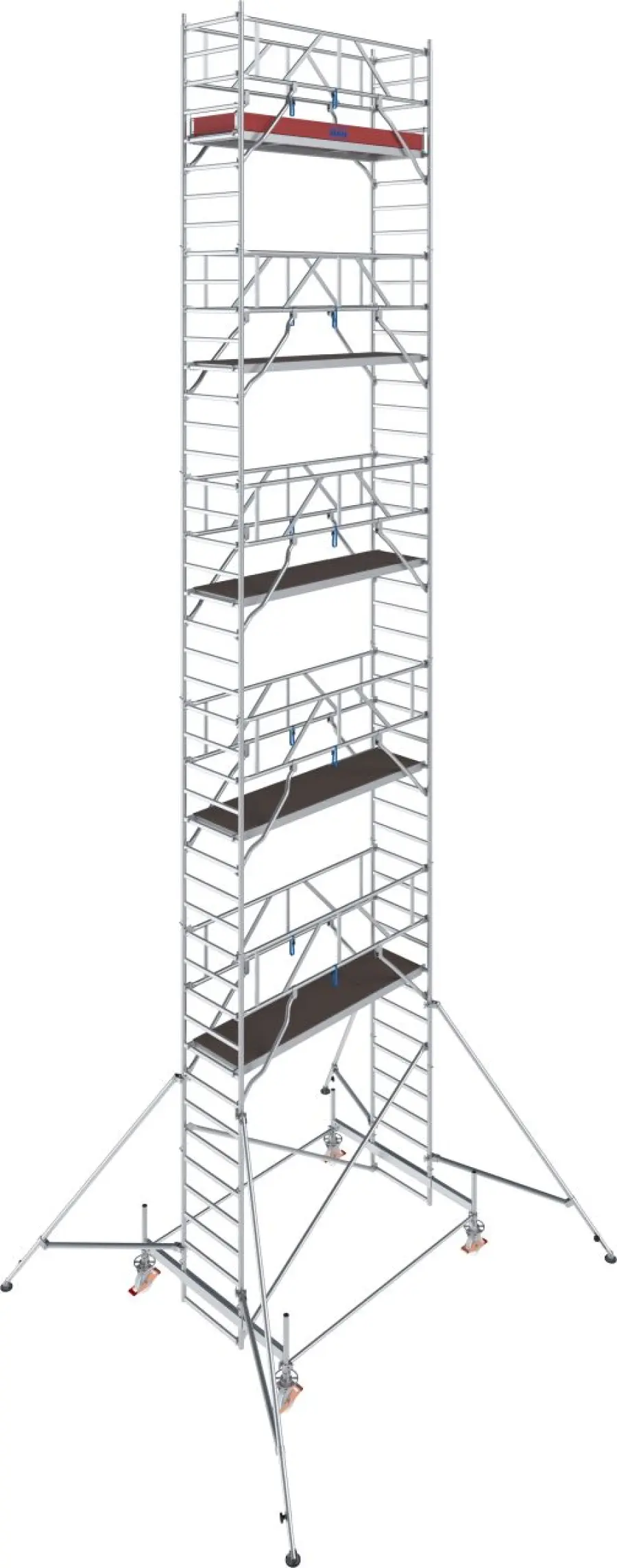 Profesionálne lešenie vhodné pre náročné práce vo výškach až 12,50 m, ktoré poskytuje robustnosť, flexibilitu a bezpečnosť v duchu značky KRAUSE. Vďaka svojej modulárnej konštrukcii, jednoduchému montáži a osvedčeným bezpečnostným prvkom je ideálnou voľbou pre remeselníkov, staveniská a profesionálne servisné práce. Lešenie spĺňa normu DIN EN 1004-1, je testované TÜV a patrí do skupiny nosnosti 3 s nosnosťou 200 kg/m².