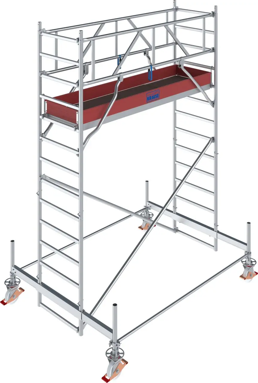 Profesionálne lešenie vhodné pre náročné práce vo výškach až 4,50 m, ktoré poskytuje robustnosť, flexibilitu a bezpečnosť v duchu značky KRAUSE. Vďaka svojej modulárnej konštrukcii, jednoduchému montáži a osvedčeným bezpečnostným prvkom je ideálnou voľbou pre remeselníkov, staveniská a profesionálne servisné práce. Lešenie spĺňa normu DIN EN 1004-1, je testované TÜV a patrí do skupiny nosnosti 3 s nosnosťou 200 kg/m².