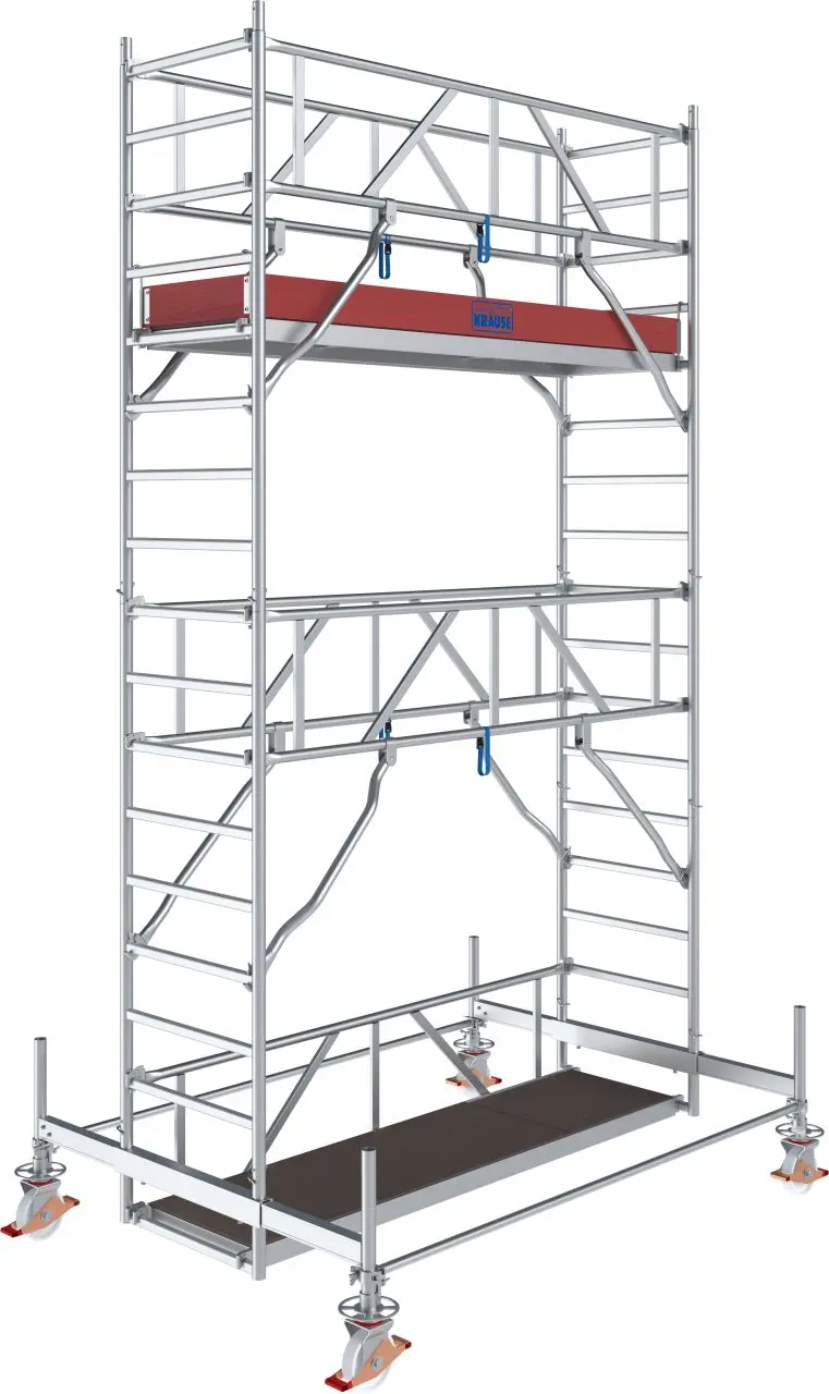 Profesionálne lešenie vhodné pre náročné práce vo výškach až 5,50 m, ktoré poskytuje robustnosť, flexibilitu a bezpečnosť v duchu značky KRAUSE. Vďaka svojej modulárnej konštrukcii, jednoduchému montáži a osvedčeným bezpečnostným prvkom je ideálnou voľbou pre remeselníkov, staveniská a profesionálne servisné práce. Lešenie spĺňa normu DIN EN 1004-1, je testované TÜV a patrí do skupiny nosnosti 3 s nosnosťou 200 kg/m².