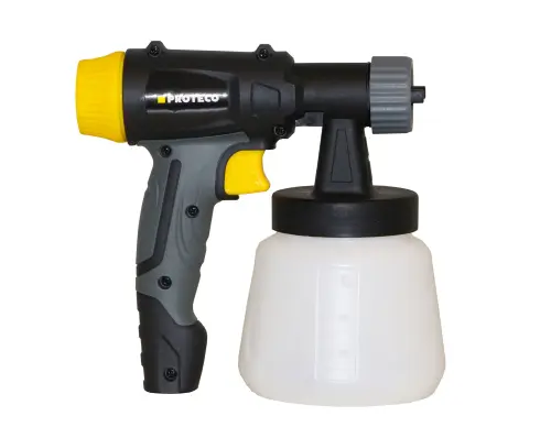 Pištoľ striekacia vzduchová s kompresorem 800 W Proteco je ľahký mobilný striekací systém vhodný pre použitie v interiéroch aj v exteriéroch. Pištoľ je určená na striekani rôznych druhov farieb, lakov - olejových, syntetických aj na vodnej báze, lazúr a latexových farieb.