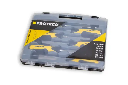 Sada dlát PROTECO vyrobených z kvalitnej CrV ocele zaručujúca vysokú a presnú kvalitu spracovania. Súprava obsahuje 6 ks dlát (8, 10, 14, 18, 22, 32 mm). Mäkčená rukoväť zaisťuje pohodlnú a dlhotrvajúcu prácu s pevným úchopom. Čepele sú presne brúsené pre maximálnu ostrosť. Dláta disponujú poniklovanou oceľovou údernou plochou, ktorá je pevná a odolná.