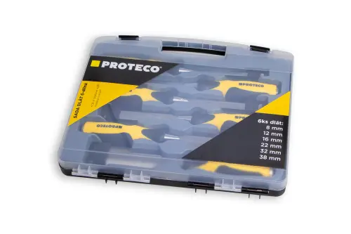 Sada dlát PROTECO vyrobených z kvalitnej CrV ocele zaručujúca vysokú a presnú kvalitu spracovania. Súprava obsahuje 6 ks dlát (8, 12, 16, 22, 32, 38 mm). Mäkčená rukoväť zaisťuje pohodlnú a dlhotrvajúcu prácu s pevným úchopom. Čepele sú presne brúsené pre maximálnu ostrosť. Dláta disponujú poniklovanou oceľovou údernou plochou, ktorá je pevná a odolná.
