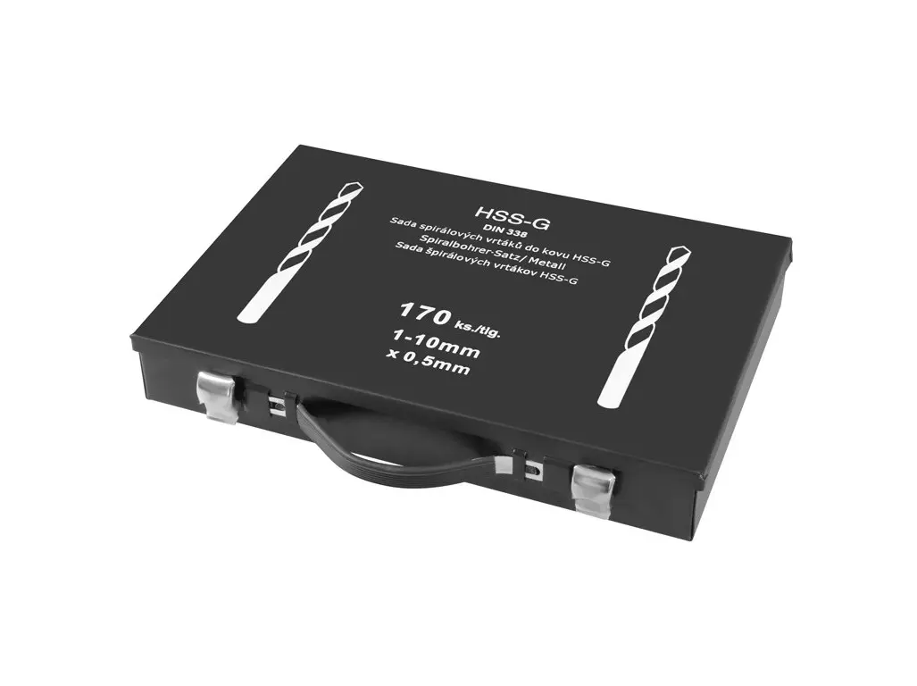 PROTECO sada vrtákov do kovu HSS-G vybrusovaných 170ks je sadou vrtákov s válcovou stopkou o týchto rozmeroch: 1; 1,5; 2; 2,5; 3; 3,5; 4; 4,5; 5; 5,5; 6; 6,5; 7; 7,5; 8; 8,5; 9; 9,5 a 10 mm.Používa sa na vŕtanie otvorov do kovu, najmä železa, ocele, šedej liatiny a hliníkových zliatin, mosadze, bronzu a mnohých ďalších.Každý vrták zo sady vrtákov do kovu je vyrobený z vysoko kvalitnej vysokorýchlostnej ocele.Tvar vrtáku a presné priečne brúsenie umožňuje pohodlné vŕtanie, zvyšuje presnosť vycentrovania a znižuje dobu vŕtania.