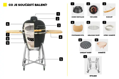 Na grilovanie, pečenie, dusenie aj údenie! 55 x 125 x 80 cm, gril na drevené uhlie, záhradný, prenosný, materiál grilu keramika, 110° - 700°C, hrúbka steny 2 cm, Priemer roštu 46 cm, hmotnosť 87 kg, obal ako DARČEK