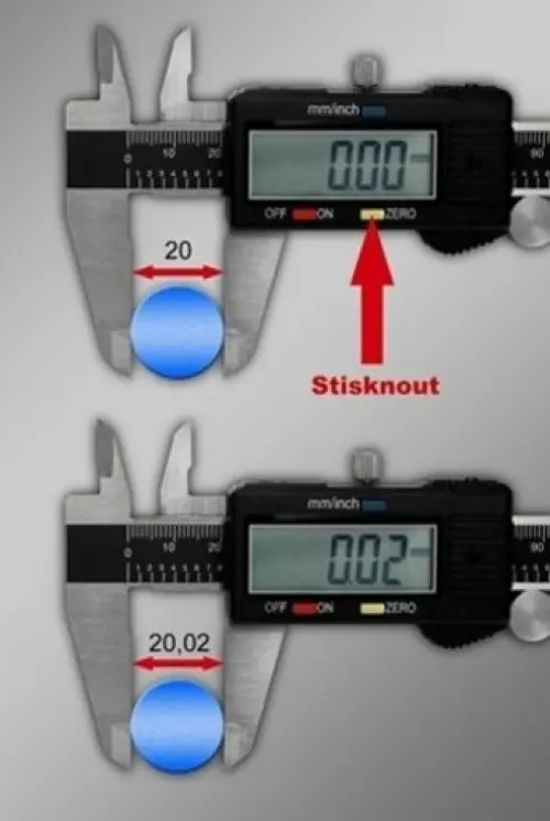 Posuvné meradlo je určené pre meranie vonkajších a vnútorných rozmerov obrobkov. Namerané hodnoty je možné odčítať na dvoch stupniciach v mm alebo inch (palcoch).