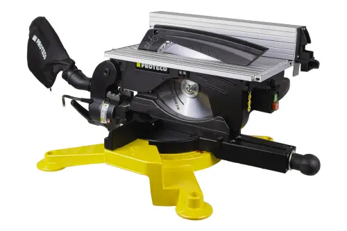 Táto praktická píla v sebe ukrýva výkonnú 1800 W kapovaciu pílu, ktorú možno v priebehu niekoľkých sekúnd premeniť na praktickú stolnú okružnú pílu. Túto kombináciu ocení každý remeselník alebo majster, ktorý pracuje na odľahlom mieste a potrebuje si so sebou vziať len nevyhnutné minimum, alebo pracuje v malej dielni, kam sa veľká stolová píla nezmestí. Píla je vybavená vysokokvalitným karbidovým kotúčom s priemerom 255 mm, ktorý umožňuje hĺbku rezu až 70 mm v prípade pokosovej píly a výšku rezu až 46 mm v prípade stolovej píly, čo v oboch prípadoch úplne postačuje na väčšinu bežných rezných úloh. Podstavec je vyrobený z robustnej zliatiny a poskytuje tak stabilný základ.