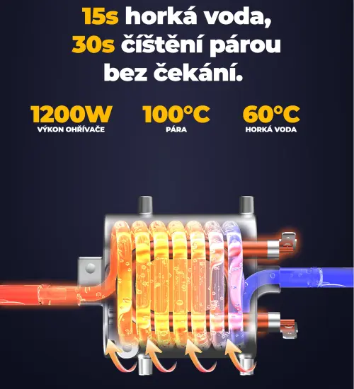 Veľkou výhodou je dotykový displej, ktorý umožňuje jednoduchý výber požadovaného režimu. Môžete si vybrať medzi čistením studenou vodou, horúcou vodou, parou vrátane vysávania alebo parou bez vysávania. Intuitívne ovládanie uľahčuje prácu a prispôsobuje výkon konkrétnej situácii. 4-metrový napájací kábel spolu s 1,2-metrovou sacou hadicou vám umožnia pohodlne dosiahnuť aj tie najvzdialenejšie kúty bez nutnosti neustáleho prepojovania zásuviek.