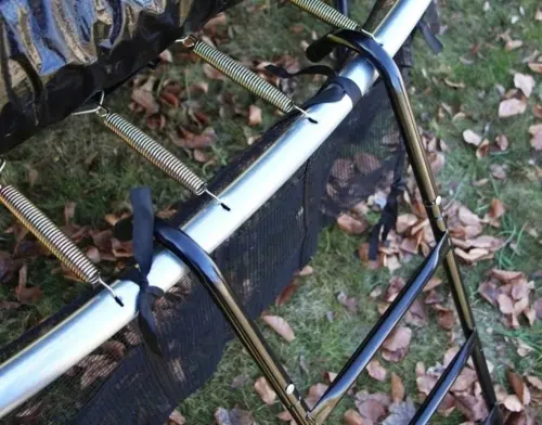 Rám = konstrukční ocel pozinková/lakovaná; Pružiny = vinuté pružiny z pružinové oceli; Odrazová a skákací plocha = umělá, vysokopevnostní vlákna; Kryt pružin = PU plachta s umělými vlákny |
