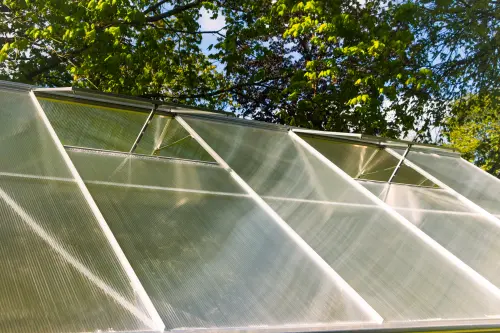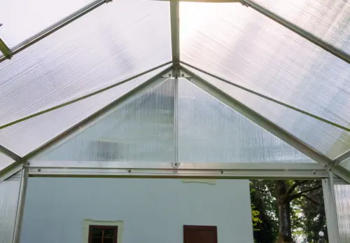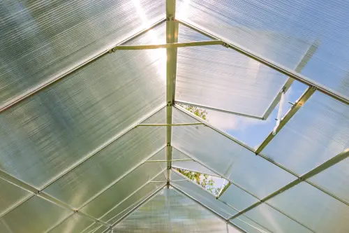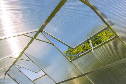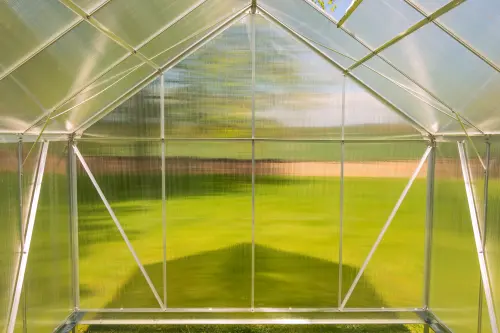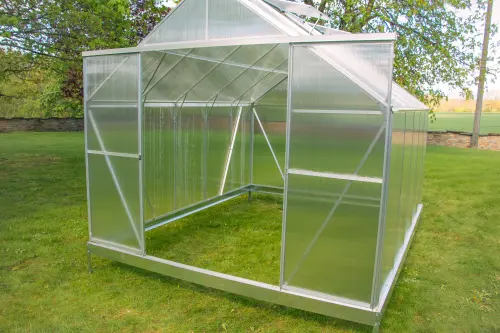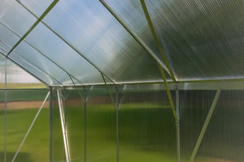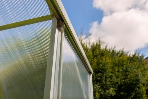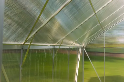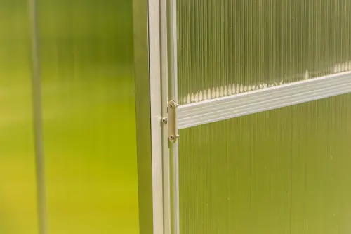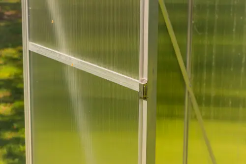 Steny skleníka sú vyrobené zo 4 mm dvojstenných polykarbonátových dosiek s UV ochranou, ktoré dokonale udržujú stabilnú teplotu a vlhkosť vo vnútri skleníka a zároveň chránia vaše rastliny pred škodlivými slnečnými lúčmi, čím zabezpečujú optimálne prostredie pre rast vašich rastlín. Dosky sa tiež ľahko čistia.