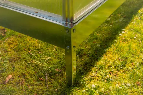 Ako bonus dostanete zadarmo oceľovú základňu, ktorá slúži ako pevná a stabilná základňa pre skleník. Táto základňa je vyrobená z kvalitnej pozinkovanej ocele, ktorá je odolná voči korózii. Výška 100 mm zabezpečuje dostatočnú vzdialenosť medzi skleníkom a zemou, čím sa znižuje riziko prenikania vlhkosti a nečistôt do skleníka.
