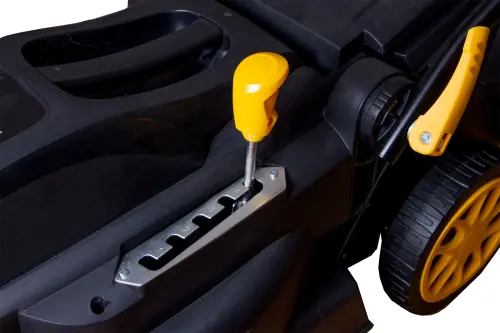 Elektrická kosačka PROTECO s výkonom 1600 W je ideálnym pomocníkem na jednoduché a rýchle kosenie trávy na záhrade. Vďaka svojmu výkonu dokáže pokosiť aj hustejšiu trávu. Kosačka je vybavená nastaviteľnou výškou kosenia v 5 polohách (25-75 mm), takže si ľahko nastavíte výšku trávnika.
