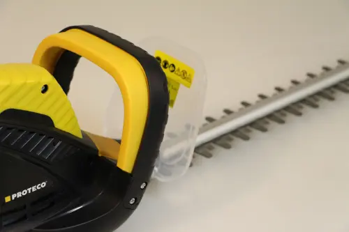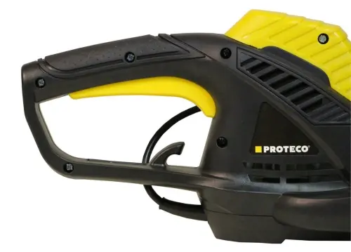 Elektrické nožnice na živý plot Proteco s výkonom 600 W v čiernožltom prevedení sú určené na tvarovanie, strihanie a zastrihávanie stredne veľkých a veľkých živách plotov a kríkov. Plotostrih vyžaduje zapojenie do zásuvky, nemusíte teda riešiť nabíjanie batérie či dolievanie benzínu. Dĺžka pracovnej lišty je 510 mm, rozostup medzi zubami 15/20 mm. Ergonomicky tvarovaná rukoväť sa dobre drží v ruke a zabezpečuje príjemnú prácu. Hmotnosť iba 2,75 kg.