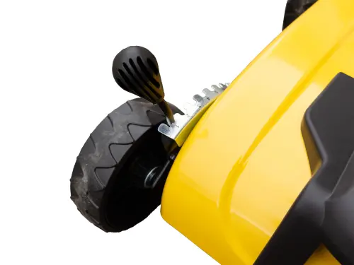 Masívny oceľové šasi poskytuje pevnú a robustnú konštrukciu na dlhodobé používanie. Tento odolný podvozok poskytuje stabilitu a odolnosť pri práci na rôznych typoch terénu, čo je kľúčom k efektívnej a pohodlnej práci na záhrade. Dvojdielna výškovo nastaviteľná rukoväť umožňuje jednoduché nastavenie výšky obsluhy podľa vašich potrieb a preferencií. Táto flexibilita zaručuje pohodlné a ergonomické používanie vertikutátora bez ohľadu na vašu výšku alebo pracovnú polohu. Okrem toho má rukoväť možnosť sklopenia do prepravnej polohy, čo je veľmi praktické pri presunoch medzi pracoviskami alebo pri skladovaní po sezóne.