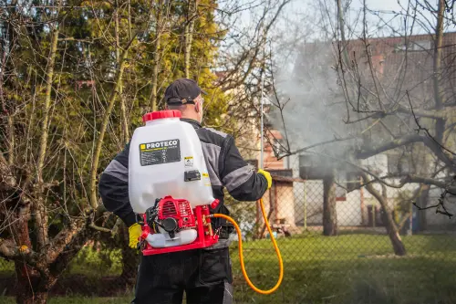 Výkonný motorový postrekovač PROTECO je praktický viacúčelový pomocník na údržbu sadov, záhonov a lesov. Pomocou postrekovača možno pohodlne rozprašovať pesticídy alebo iné postreky na ochranu rastlín, ošetrenie proti chorobám a škodcom alebo na ničenie buriny.